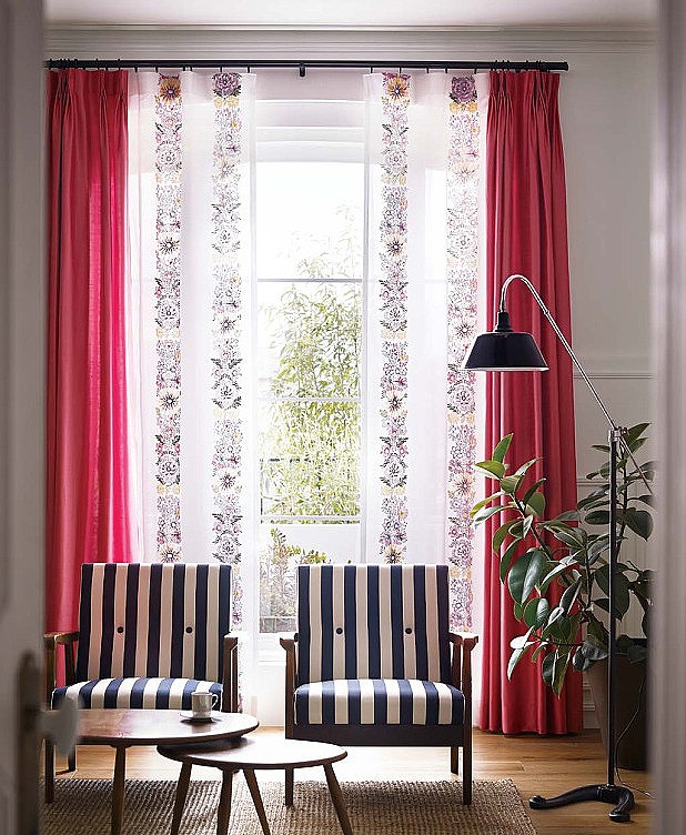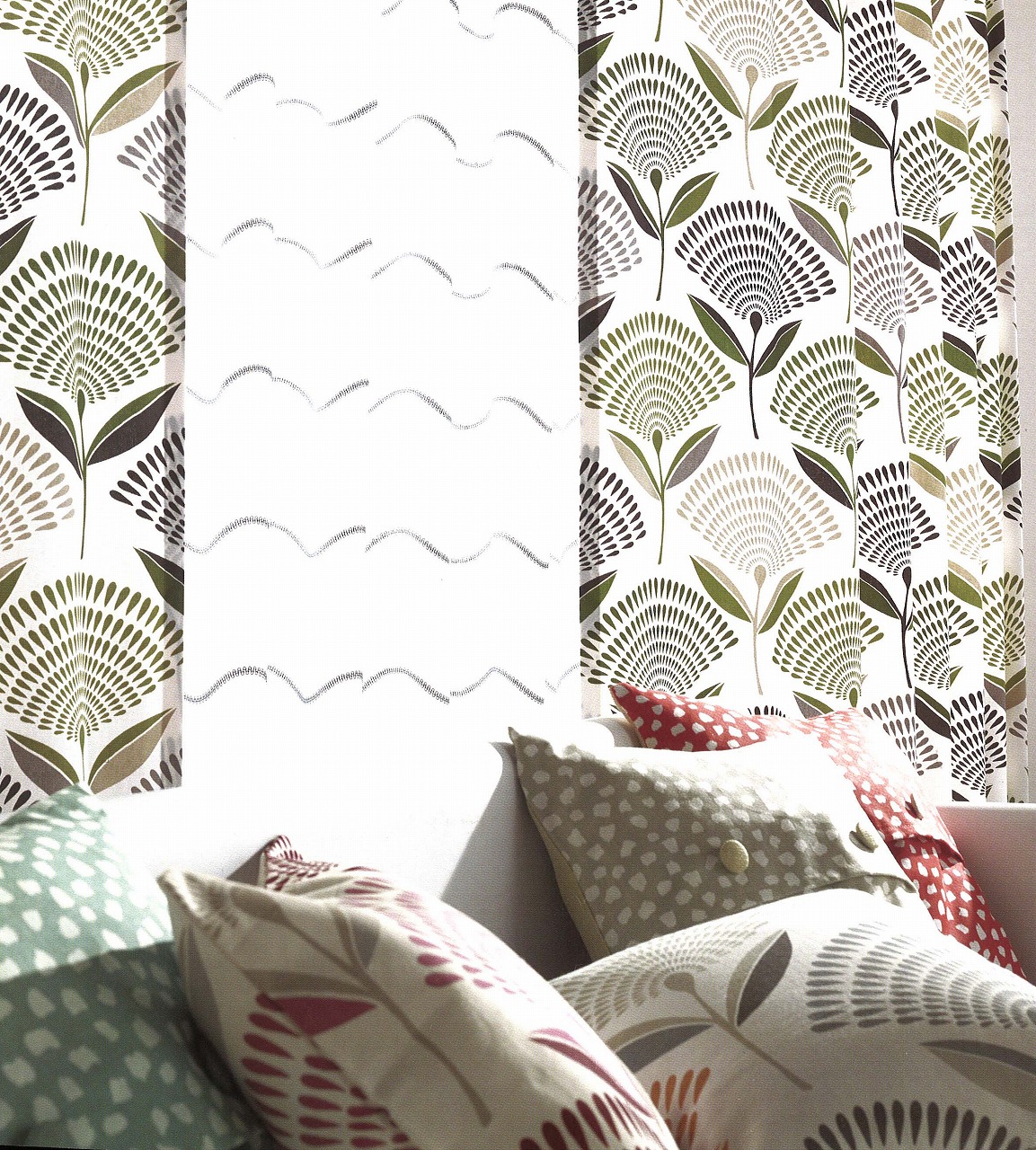 窓にかかった鳥の生地は ↓