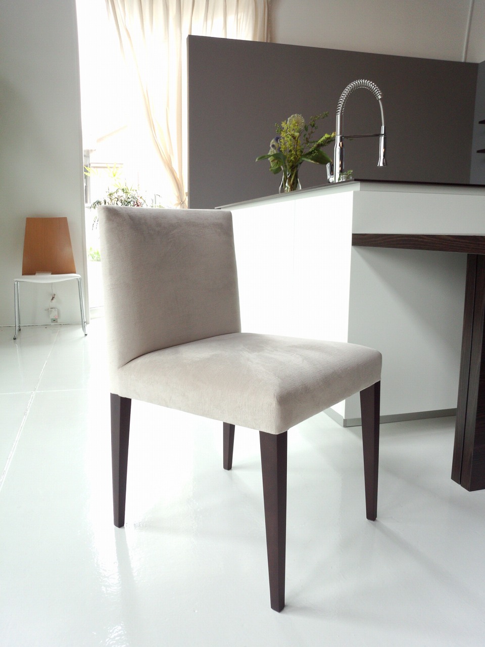 キッチンに合わせて、張地や脚の色をすごく迷いましたが、
