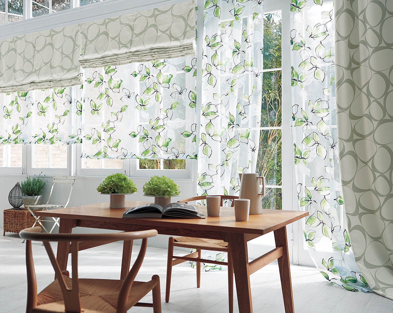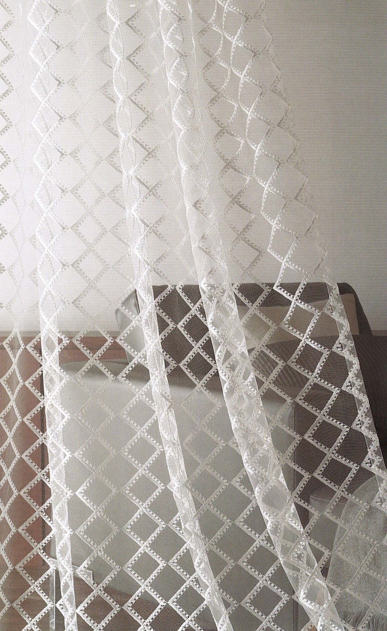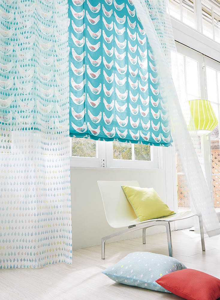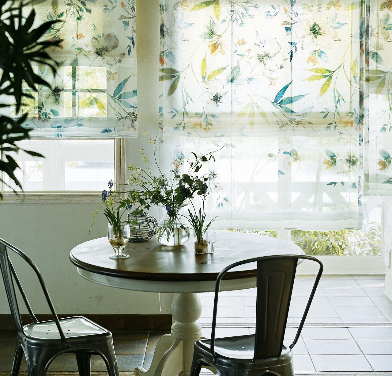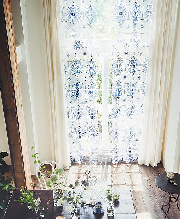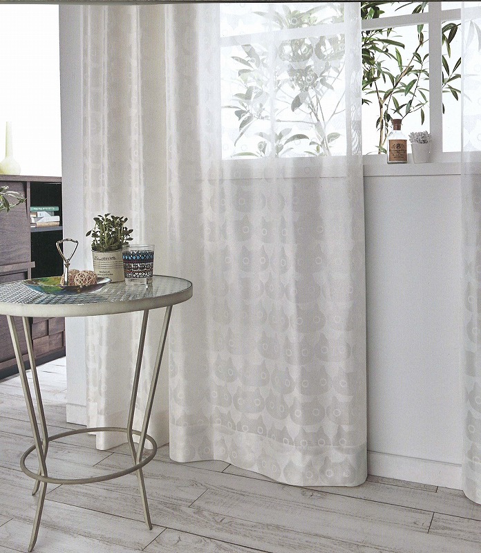 窓にかかった鳥の生地は ↓