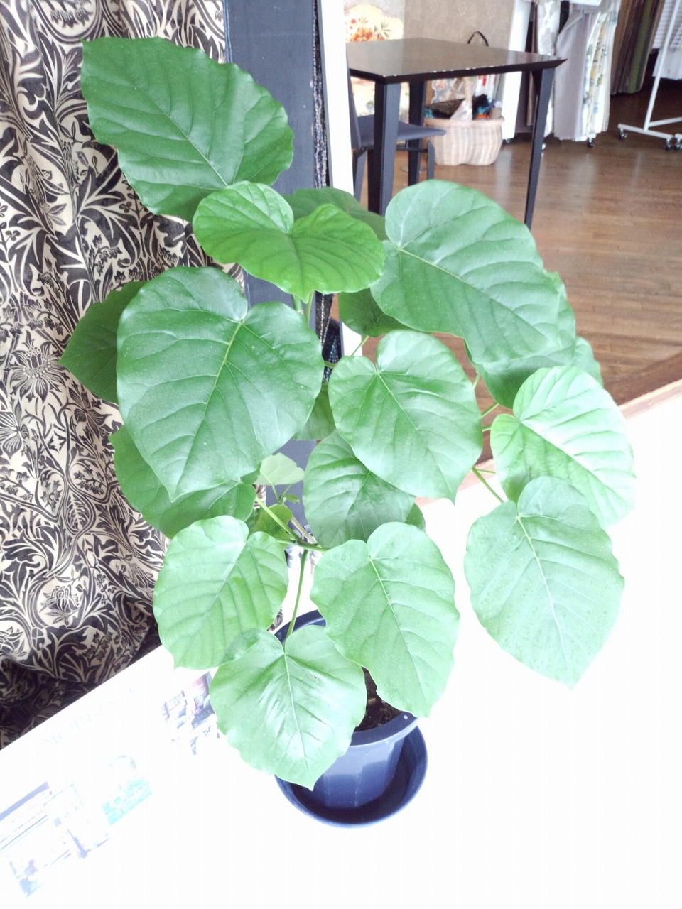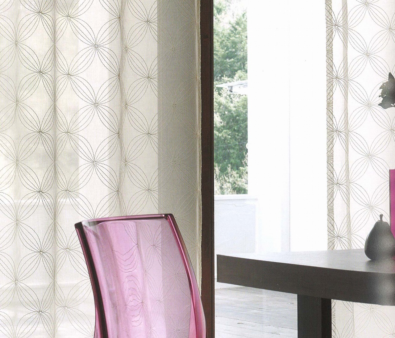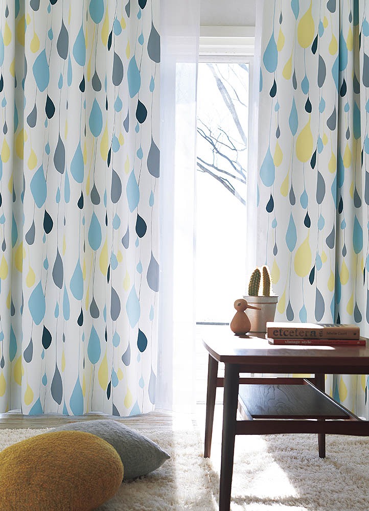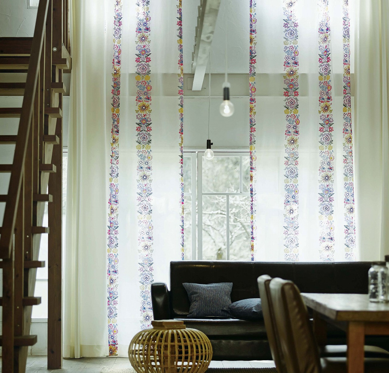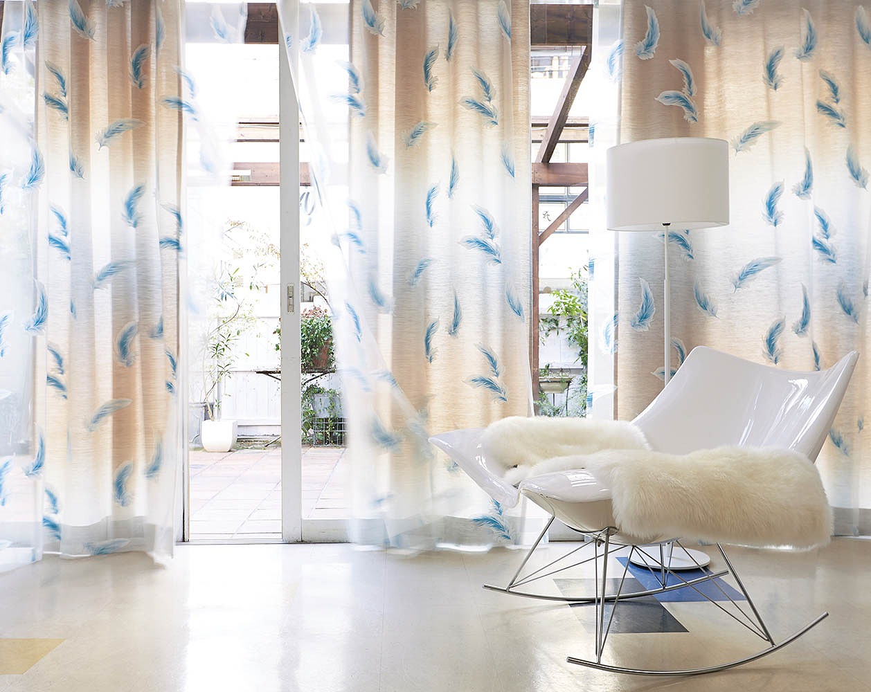 窓にかかった鳥の生地は ↓
