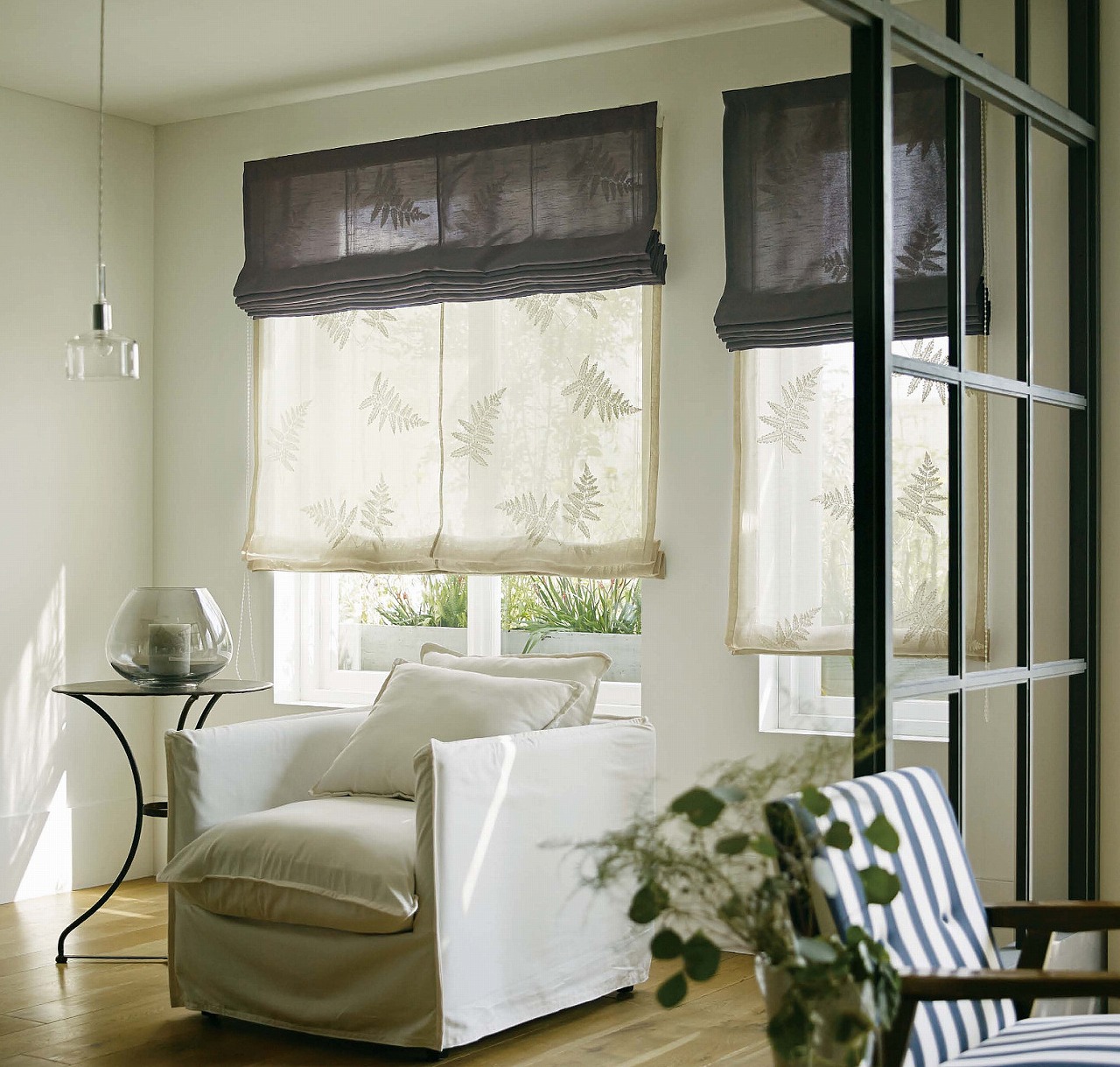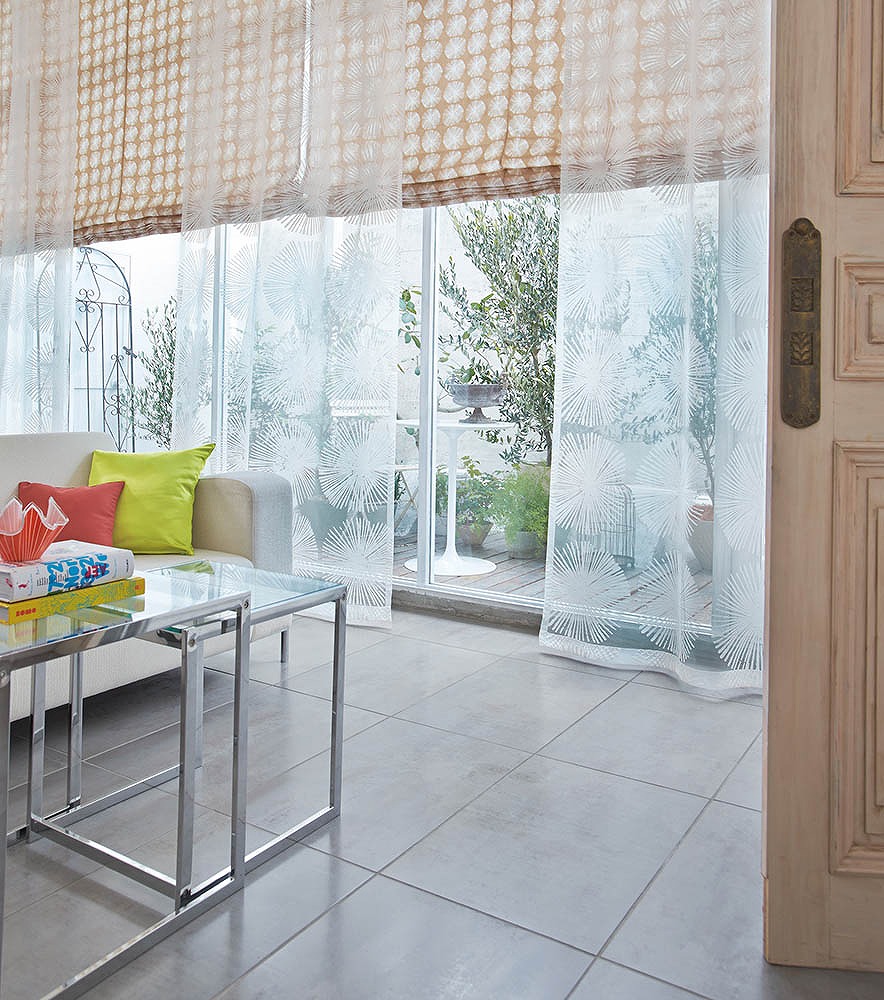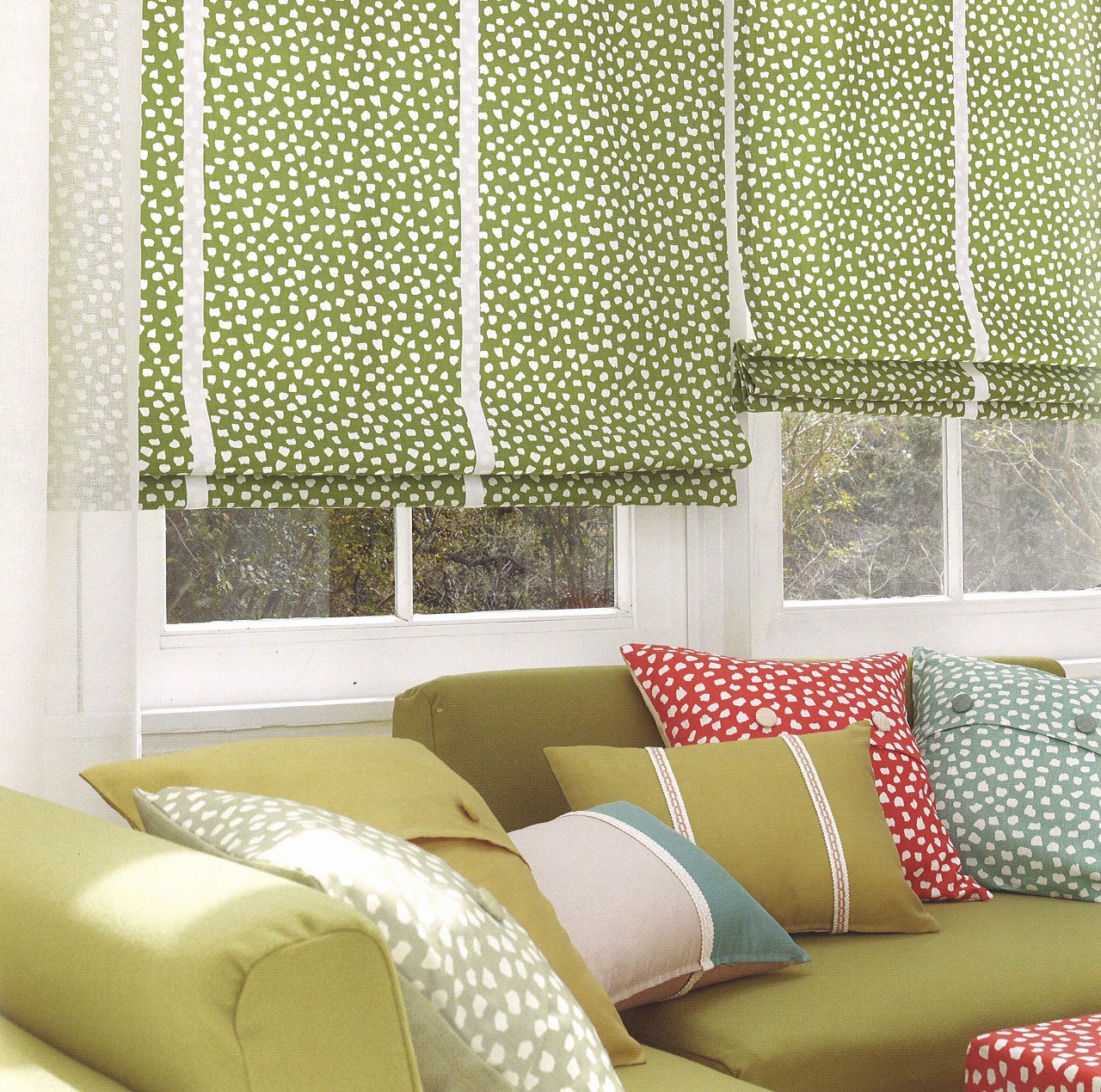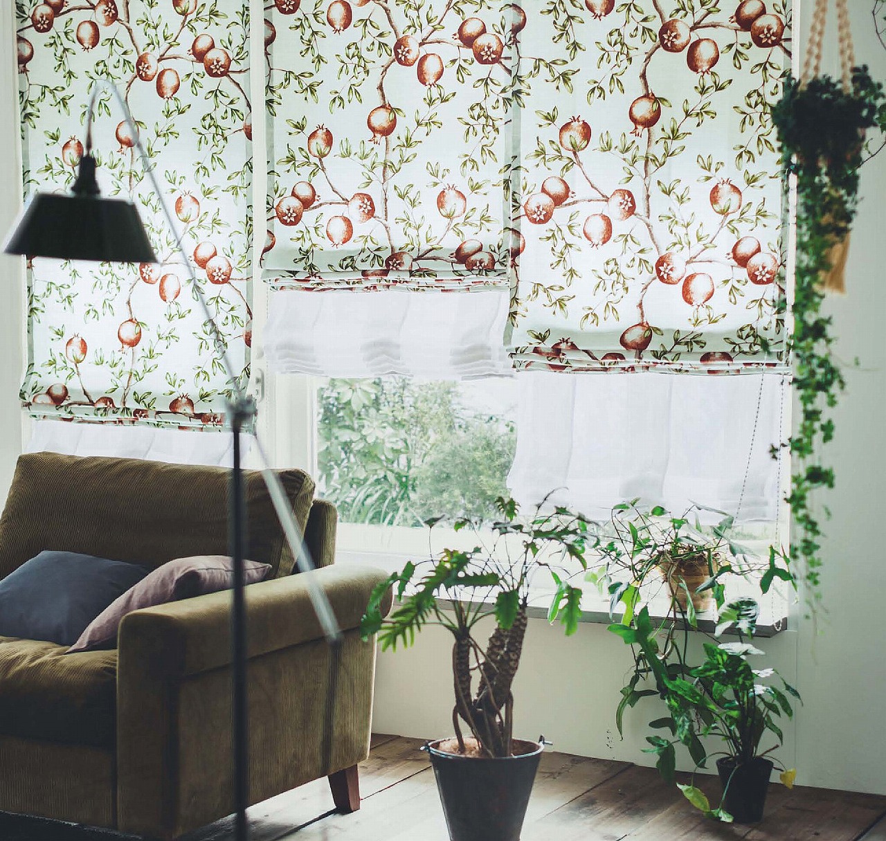 窓にかかった鳥の生地は ↓