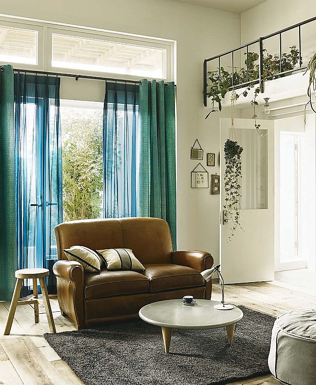 革のソファがカーテンとお似合いです