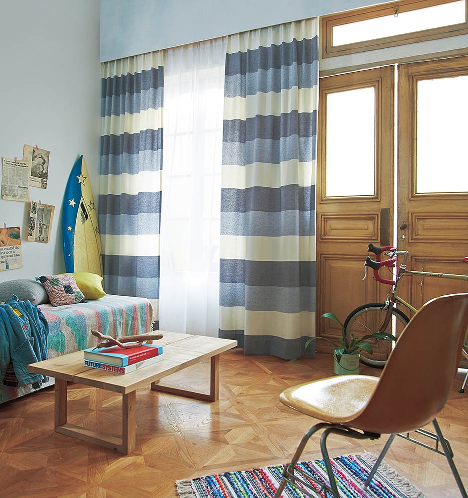カーテンもソファの張地も柄物でも、ごちゃごちゃせずにマッチするんですね~